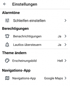 | Kein Push-Alarm | 1. Hast du beim ersten Start alle Fragen mit „Erlauben“ bestätigt? 2. iOS: Prüfe in den iPhone-Einstellungen unter Mitteilungen, ob „Kritische Hinweise“ aktiv sind. 3. Prüfe in den App-Einstellungen unter „Schleifen“, ob deine Einheit aktiviert ist. |